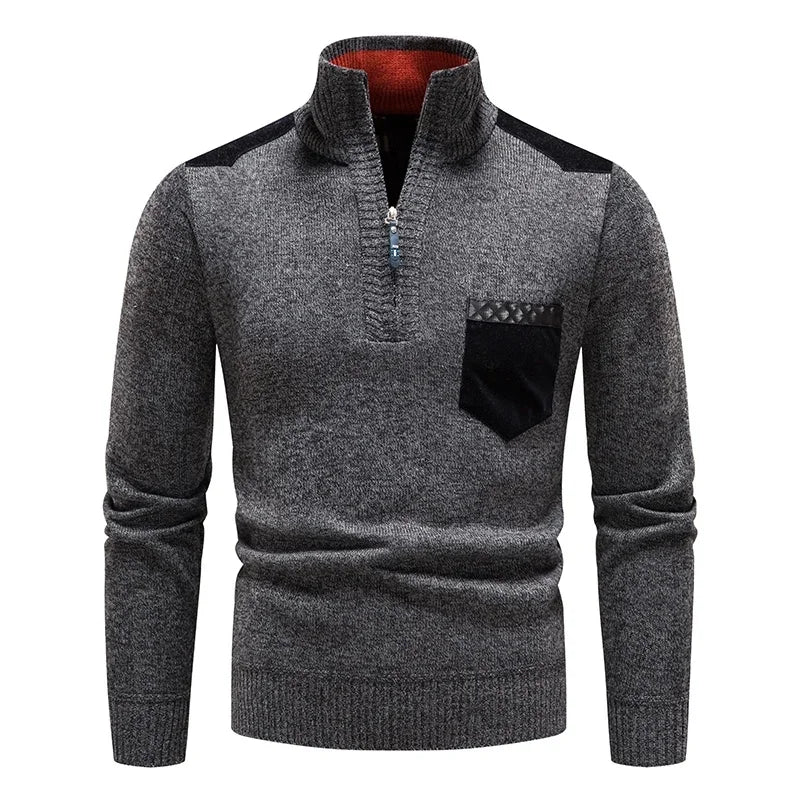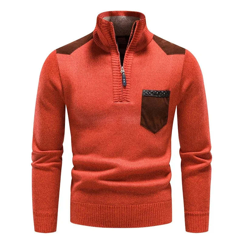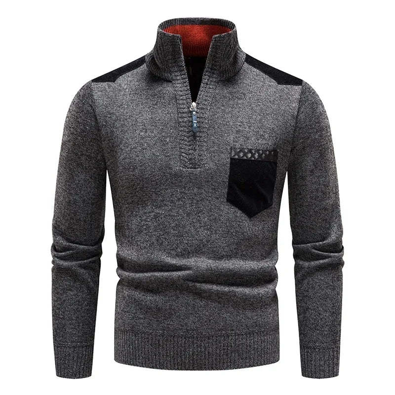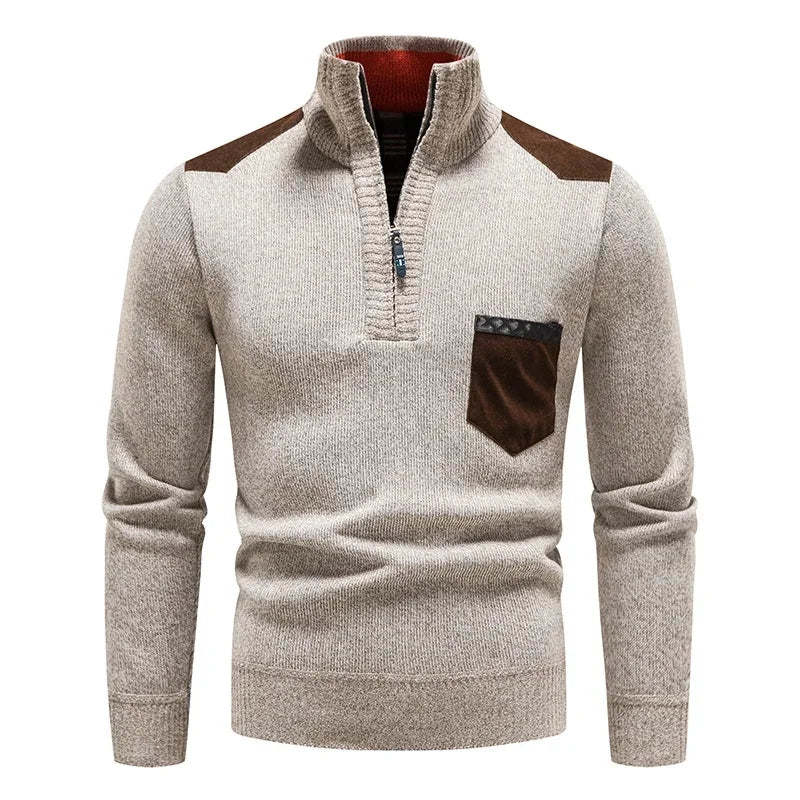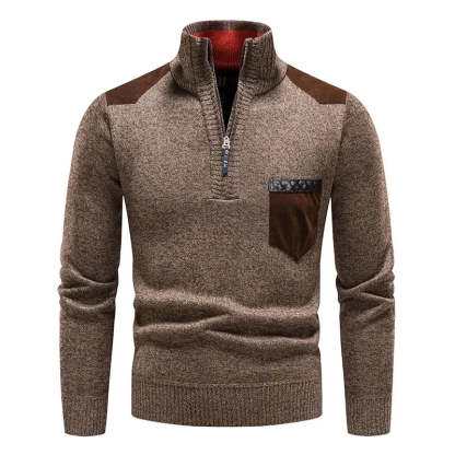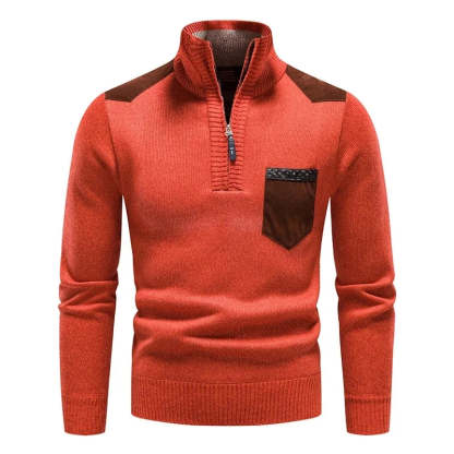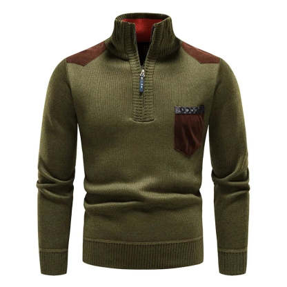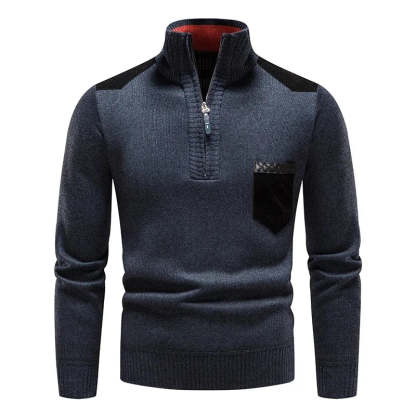 Embrace both style and comfort with this expertly crafted sweater, made from buttery-soft wool that provides a luxurious feel. Featuring a half-zip closure and high collar for extra warmth, it also boasts contrasting front pocket and shoulder accents, adding a sleek, modern edge.