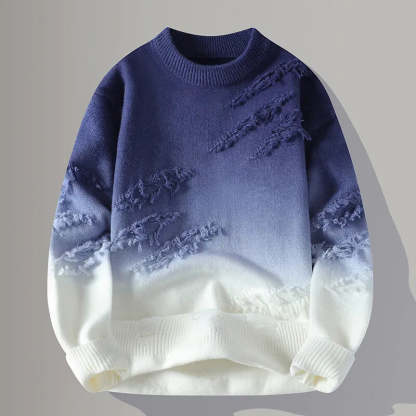 Dive into the cutting-edge style with hand-distressed details and striking urban gradient colors. This soft cotton blend sweater lets you boldly declare your spirit.